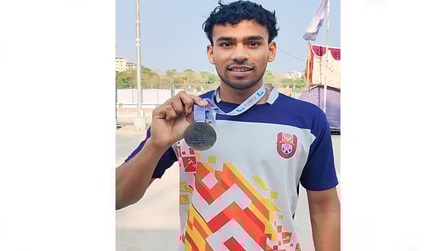 येथील कर्मवीर मोरे महाविद्यालयाचा विद्यार्थी मनजित महतो याने नॅशनल यूथ ॲथलेटिक्स चॅम्पियनशिप स्पर्धेत गोळाफेकमध्ये सुवर्णपदक पटकावले. कर्नाटकातील उडपी येथे झालेल्या ॲथलेटिक्स चॅम्पियनशिप स्पर्धेमध्ये मनजितकुमार रामेश्वर महतो याने 18 वर्षांखालील गोळाफेक स्पर्धेत 17.25 मीटर गोळाफेक करत प्रथम क्रमांकासह सुवर्णपदक पटकावले. आगामी आशियाई क्रीडा स्पर्धेसाठी त्याची निवड करण्यात आली आहे. मविप्रच्या नाशिक येथील मध्यवर्ती कार्यालयात संस्थेचे सरचिटणीस ॲड. नितीन ठाकरे यांच्या हस्ते मनजितला सन्मानित करण्यात आले. याप्रसंगी राष्ट्रीय स्तरावर लांब उडीमध्ये यशस्वी सहभाग असलेला खेळाडू भूषण शिंदे याचाही सत्कार करण्यात आला. याप्रसंगी महाविद्यालयाचे प्राचार्य डॉ. ए. के. शिंदे, क्रीडा संचालक चेतन कुंदे, सिनेट सदस्य डॉ. सी. बी. निगळे, प्रा. महेश बनकर, डॉ. प्रवीण ढेपले आदी उपस्थित होते.