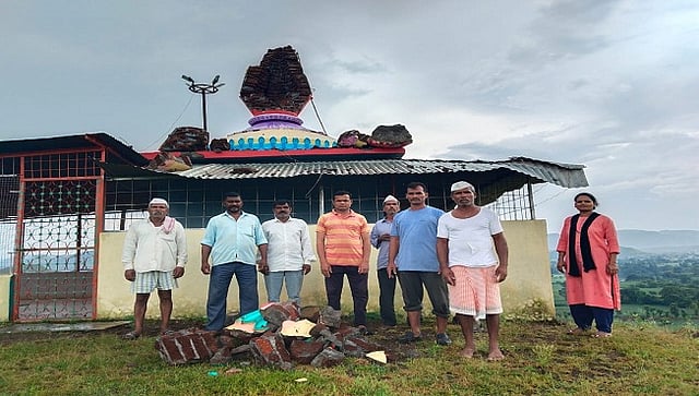 कळवण तालुक्यातील जयपूर शिवारात दुपारी 2 च्या सुमारास विजांच्या कडकडाटासह जोरदार पाऊस सुरू असताना येथील अपार्णिका देवी मंदिरावर वीज कोसळून मंदिराचा कळस तुटला. यामध्ये सुदैवाने कोणतीही जीवितहानी झालेली नाही. मात्र, मंदिरावर कोसळलेल्या विजेमुळे नागरिकांमध्ये भीतीचे वातावरण पसरले असून, गावात वेगवेगळ्या चर्चांना उधाण आले आहे.