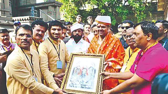 श्री काळाराम संस्थानतर्फे विश्वस्त मंडळाने मुख्यमंत्री व उपमुख्यमंत्र्यांचे स्वागत करत त्यांना वारकरी फेटा व तुळशीहार प्रभू श्रीराम यांची फ्रेम, शाल देऊन सन्मान करण्यात आला. यानंतर मुख्यमंत्र्यांनी काळारामाचे दर्शन घेत अभिषेक केला. मंदिर परिसराची पाहणी करत माहिती जाणून घेतली. राम काल पथमुळे श्री काळाराम मंदिराची विविध प्रकारचे विकासकामे, मंदिर परिसराची होणाऱ्या सुशोभिकरण व भाविकांच्या सोयी सुविधांबद्दल मंदीर पुजाऱ्यांनी मुख्यमंत्र्यांचे आभार मानले. यावेळी कुंभमेळामंत्री गिरीष महाजन, शालेय शिक्षणमंत्री दादा भुसे, क्रीडामंत्री ॲड. माणिकराव कोकाटे, आमदार ॲड. राहुल ढिकले, आमदार देवयानी फरांदे, आमदार सीमा हिरे, विभागीय आयुक्त डॉ. प्रविण गेडाम, कुंभमेळा प्राधिकरणाचे आयुक्त शेखरसिंह, पोलिस आयुक्त संदीप कर्णिक, महापालिका आयुक्त मनीषा खत्री, मंदिराचे विश्वस्त शांताराम आवसरे, शुभम मंत्री, मिलिंद तारे, मंदार जानोरकर, मंगेश पुजारी, एकनाथ कुलकर्णी, धनंजय पुजारी आदी उपस्थित होते.
