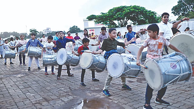 नाशिक : गणेशोत्सव महिनाभरावर येऊन ठेपला आहे. 'श्रीं'च्या स्वागतासाठी शहर व परिसरात ढोल वादनाच्या सरावाला रंग चढत आहेत. पंचवटी, नवीन नाशिकसह शहरातील विविध भागांत ढोल वादनाचा निनाद उमटत आहे. (Ganeshotsav is almost a month away)