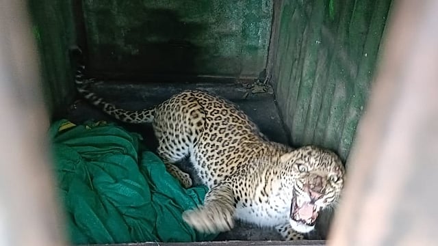 या परिसरात बिबट्यासह दोन बछडे आहेत. या बिबट्याला पकडण्यासाठी वनविभाग कसोशीने प्रयत्न करत आहे. गेल्या काही दिवसांपासून तालुक्यातील अनेक भागात शेतकऱ्यांना बिबट्याचे दर्शन होत असल्याने परिसरात दहशत निर्माण झाली आहे. दिंडोरी परिसरातील जाधव वस्तीवर एक व वनारवाडी शिवारात दोन बिबट्यांना जेरबंद करण्यात वनविभागाला यश आले आहे. बिबट्याच्या दहशतीमुळे शेतकरी रात्री घराबाहेर पडणे टाळत आहेत. या बिबट्यांना वनविभागाने लवकरात लवकर पकडून दूर जंगलात सोडावे, अशी मागणी ग्रामस्थांनी केली आहे.