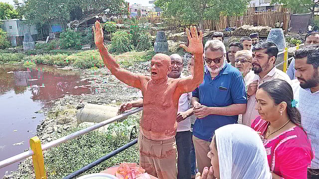 मालेगाव (नाशिक) : बकरी ईदनिमित्त कुर्बानीला विशेष महत्त्व दिले जाते. दरम्यान शहरातील संगमेश्वर भागातील सांडवा पूल परिसरातील मोसम नदी पात्रात मोठ्या प्रमाणात रक्तमिश्रित पाणी येत असल्याने नागरी सुविधा समितीचे रामदास बोरसे यांनी महापालिकेच्या निषेधार्थ शरीराला शेंदुर फासून आंदोलन केले. मनपा आयुक्तांवर गुन्हा दाखल करण्याच्या जिल्हाधिकाऱ्यांच्या आश्वासनानंतर बोरसे यांंनी आंदोलन मागे घेतले.