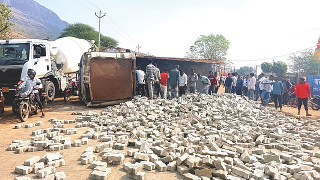 मनमाडजवळील नागापूर येथून सीमेंटचे गट्टू भरलेली (विनानंबरची) ट्रक चालक शेखर साठे (26, रा. नागापूर) हा चांदवडकडे घेऊन येत होता. या अपघातात ट्रकच्या पाठीमागे बसलेले कामगार रंजित सोलंकी (19), राजेश सोलंकी (25), सारधी सोलंकी (22), परवेश यादव (22) गंभीर जखमी झाले. गंभीर जखमींवर चांदवड उपजिल्हा रुग्णालयात वैद्यकीय अधिकारी डॉ. सतीश गांगुर्डे यांनी उपचार केले. सर्व मजूर चोपला (ता. सेंधवा, जि. बडवाणी) येथील असून, सध्या नागापूर येथे वास्तव्यास होते.
