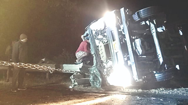 ट्रक उलटा झाल्याने ट्रकमध्ये अडकलेल्या गंभीर व्यक्तीला दीड तासाच्या अथक प्रयत्नानंतर महामार्ग सुरक्षापथकाने काढून उपचारासाठी कसारा ग्रामीण रुग्णालयात हलविले. सहायक पोलिस निरीक्षक राम होंडे यांच्या मार्गदर्शनाखाली पथकाने याकामी मदतकार्य राबविले.
