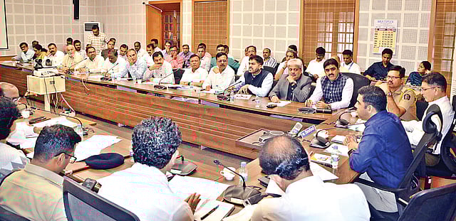 नाशिक : झूम बैठकीत मार्गदर्शन करताना जिल्हाधिकारी जलज शर्मा. समवेत धनंजय बेळे, संजय सोनवणे, ललित बूब यांच्यासह विविध विभागांचे प्रमुख.  (छाया : हेमंत घोरपडे)