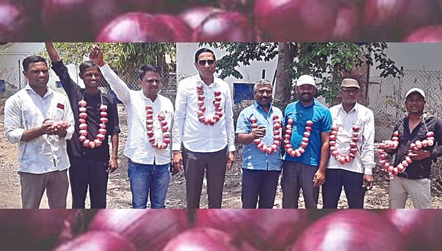 लासलगाव कृषी बाजार समितीचे माजी उपसभापती व विद्यमान संचालक ललित दरेकर, संदीप गायकर, अंबादास गायकर, कृष्णा गायकर, भाऊराव सोनवणे, ललित पूरकर, मच्छिंद्र गायकर, चेतन माळी या कांदा उत्पादक शेतकऱ्यांनी केंद्र सरकारच्या कांदा निर्यातबंदीच्या धोरणाबाबत निषेध करण्यासाठी कांद्याच्या माळा गळ्यात घालत निदर्शने केली.