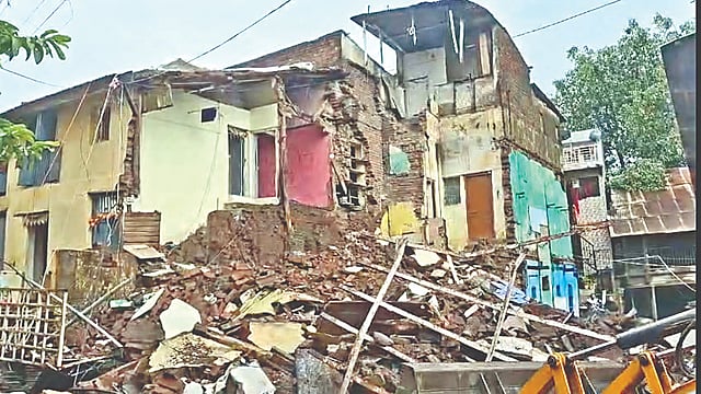 शहरात धोकेदायक वाडे, घरांचा प्रश्न गंभीर बनला आहे. महापालिकेने सालाबादाप्रमाणे यंदाही शहरातील बाराशेवर धोकेदायक जुने वाडे, पडक्या घरांच्या मालक, भोगवटादारांना नोटिसा बजावल्या. या घरांना पोलिस बंदोबस्तात उतरविण्याची कारवाई मात्र कागदावरच राहिली आहे. त्यामुळे पावसाचा जोर चढताच धोकेदायक वाडे, घरे कोसळण्यास सुरुवात झाली आहे. गुरुवारी जुन्या नाशकातील चव्हाटा येथील देवी मंदिराच्या मागे असलेला सय्यद यांचा वाडा (घर क्रमांक. ३५१५)चा काही भाग कोसळला. यानंतर लगतच्या विजय शिंदे यांच्या घराची भिंत देखील कोसळली. घराच्या वरच्या मजल्यावर दोन लहान मुले अडकली होती. त्यांना स्थानिक तरुणांनी मदतकार्य करून सुखरूप बाहेर काढले. हा वाडा सय्यद आणि शिंदे यांच्या मालकीचा आहे. याठिकाणी विजय शिंदे वास्तव्यास होते. तसेच आरीफ सय्यद यांचा परिवार दुसर्या ठिकाणी वास्तव्यास होता. मागील दोन दिवसांपासून सुरू असलेल्या संततधार पावसामुळे या घराच्या भिंतींना तडे गेले होते. शेवटी आज ते संपूर्णपणे कोसळले. घराच्या शेजारी असलेल्या रहिवाशांनी वेळीच सावधगिरी बाळगल्यामुळे मोठी दुर्घटना टळली. घटनेची माहिती मिळताच नाशिक महापालिकेचे आपत्ती व्यवस्थापन पथक, अग्निशमन दल आणि पोलिस घटनास्थळी दाखल झाले. या घटनेने धोकादायक घरे व वाड्यांचा विषय पुन्हा ऐरणीवर आला आहे.