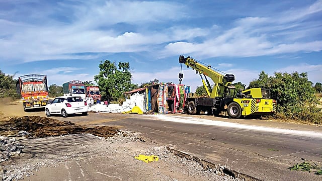 विलास चंद्रकांत मेंगाळ (रा. जाचकवाडी, पो. बोटा, ता. अकोले, जि. अहिल्यानगर) हे ट्रक (एम.एच. १२ पी. क्यू. ९७१३) घेऊन जात असताना रस्ता दुरुस्तीचे काम सुरू होते. या ठिकाणी योग्य बॅरिकेडस, सूचना फलक, रिफ्लेक्टर, धोक्याची सूचना, रात्रीची प्रकाश व्यवस्था, ब्लिंकरर्स, रिबीन लावण्यात आलेली नव्हती. रस्ता फोडून त्यातून निघालेले सिमेंट काँक्रिटचे तुकडे बाजूला पडलेले होते. कामाची योग्य देखरेख करण्यात आलेली नव्हती. कोणतीही योग्य सुरक्षा व्यवस्था केलेली नव्हती. या निष्काळजीपणामुळे विलास मेंगाळ यांचा तेथे अपघात होऊन गंभीर जखमी झाले. त्यातच त्यांना मृत्यू झाला. वाहनाचेही तीन लाख रुपयांचे नुकसान झाले, अशी फिर्याद दिंडोरी पोलिस ठाण्यात पोलिस शिपाई प्रवीण भोईर यांनी दिली. याबाबत ठेकेदार, सुपरवायझर व संबंधीत जबाबदार व्यक्तींविरोधात गुन्हा दाखल करण्यात आला आहे.