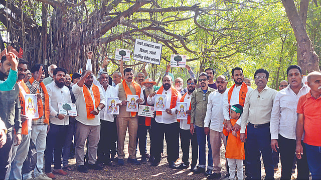 नाशिक : तपोवनात घोषणाबाजी करताना संभाजी ब्रिगेडचे पदाधिकारी व कार्यकर्ते.  (छाया : हेमंत घोरपडे)