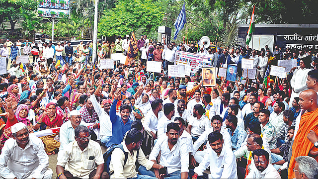 नाशिक : अतिक्रमण निर्मूलन मोहिमेविरोधात महापालिका मुख्यालयासमोर सिध्दार्थनगर, संत कबीरनगर झोपडपट्टीवासीयांनी काढलेला मोर्चा.  (छाया : हेमंत घाेरपडे)