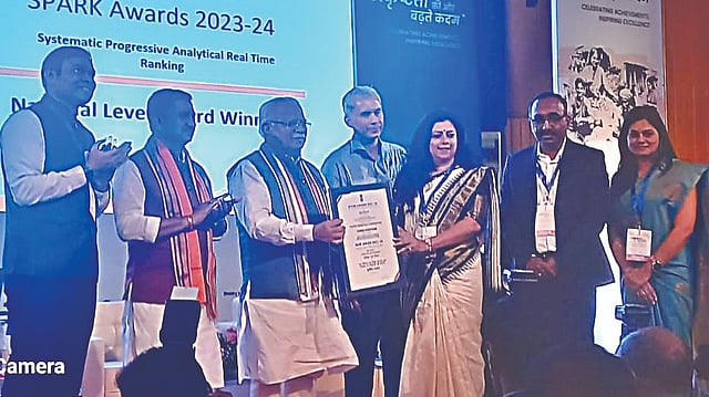 नाशिक : दीनदयाळ अंत्योदय योजनेअंतर्गत राष्ट्रीय नागरी उपजिविका अभियानाच्या अंमलबजावणीत उत्कष्ठ कार्य केल्याबद्दल केंद्रीय गृह निर्माण व शहर विकास मंत्रालयातर्फे नाशिक महापालिकेला गुरूवारी(दि.१८) 'स्पार्क २०२४' पुरस्काराने गौरविण्यात आले. नवी दिल्लीतील विशेष सोहळ्यात केंद्रीय गृह निर्माण व शहर विकास मंत्री मनोहर लाल, केंद्रीय गृह निर्माण व शहरी राज्यमंत्री तोखन साहू यांच्या हस्ते महापालिकेच्या अतिरीक्त आयुक्त स्मिता झगडे यांनी हा पुरस्कार स्वीकारला. The Nashik Municipal Corporation (NMC)