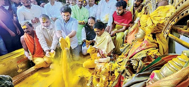 जेजुरी; पुढारी वृत्तसेवा : माजी मंत्री आदित्य ठाकरे यांनी बुधवारी (दि. 9) सायंकाळी सात वाजता जेजुरीगडावर जाऊन कुलदैवत खंडोबादेवाचे दर्शन घेतले. कुलधर्म, कुलाचारानुसार त्यांनी तळीभंडार केला. ऐतिहासिक तलवार उचलून देवाचा जयजयकार केला. आपण श्री खंडोबादेवाच्या दर्शनासाठी व देवाचा आशीर्वाद घेण्यासाठी येथे आलो असून, राजकीय विषयावर बोलणार नसल्याचे त्यांनी पत्रकारांना सांगितले.