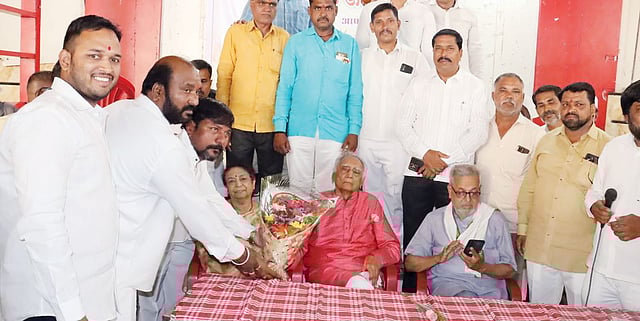 ज्येष्ठ सामाजिक कार्यकर्ते आणि कामगार नेते डॉ. बाबा आढाव यांच्या 94 व्या वाढदिवसानिमित्त गुलटेकडी मार्केट यार्ड येथील हमाल भवन येथे समारंभाचे आयोजन करण्यात आले होते. शनिवारी (दि. 1) सकाळी दहाच्या सुमारास बाबा गुलाबी कुडता व पांढरा पायजमा परिधान केलेल्या वेषात सपत्नीक हमाल भवन येथे दाखल झाले. या वेळी, केक कापून राज्यभरातून दाखल झालेल्या कष्टकरी वर्गाने त्यांवर शुभेच्छांचा वर्षाव करत प्रकृती स्वास्थ्याबद्दल सदिच्छा व्यक्त केल्या. या वेळी बाबांना पुष्पगुच्छ भेट देत त्यांच्यासोबत छायाचित्र काढण्यासाठी कष्टकर्यांमध्ये चढाओढ लागली. केक, पुष्पगुच्छ व शाल देत कष्टकर्यांनी बाबांचा वाढदिवस उत्साहात साजरा केला.