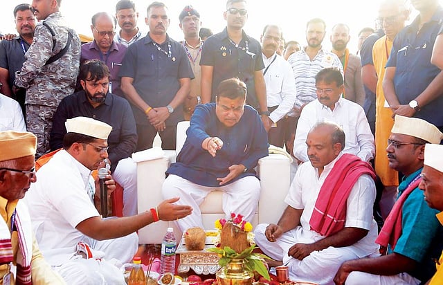 कार्यक्रम प्रसंगी गडकरी यांनी माउलींच्या समाधीचे दर्शन घेत आरती केली. तद्नंतर कार्यक्रमस्थळी येत विधिवत मंत्रोच्चारात प्रकल्पाचे भूमिपूजन केले. प्रास्ताविकात बोलताना विश्वस्त अॅड. उमाप यांनी साडेचारशे एकर जमिनीवर असलेले सामाजिक वनीकरण शेरे उठविण्याची मागणी केली. इंद्रायणी प्रदूषण आराखडा मंजुरी व पालखी मार्ग दुरुस्ती वेगाने व्हावी, अशी मागणी केली. त्यावर गडकरी यांनी पालखी मार्ग काम लवकरात लवकर पूर्ण करणार असल्याचे सांगितले.