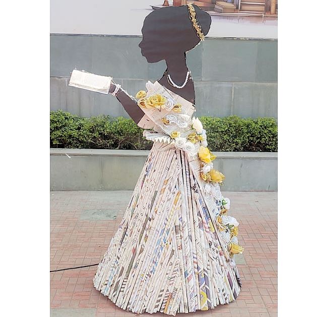 पुणे; पुढारी वृत्तसेवा : प्रवेशव्दारातून आत गेलात की तुम्हाला एक कागदाची महिला दिसते. तिने घातलेल्या नाकातल्या नथीपासून ते पायातल्या पैंजणापर्यंत सर्व दागिने कागदाचेच. ठिकठिकाणी वर्तमानपत्र अन् पुस्तकांचे झुंबर अन् फ्लॉवरपॉट.. हे चित्र आहे कॅम्प भागातील लष्करी महिला अधिकार्यांच्या पत्नींनी भरवलेल्या आवा लिटरेचर फेस्टिव्हलमधले.