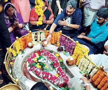 शिवलिंगावर फुलांची आकर्षक सजावट पर्यटकांनी लुटला निसर्गाचा आनंद