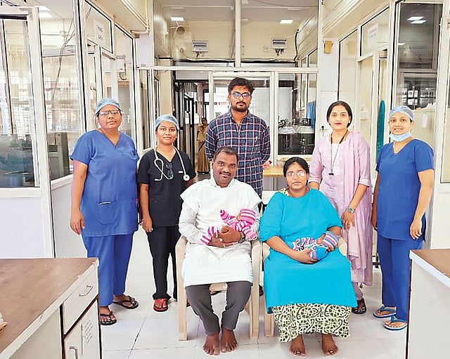 पुणे : पुढारी वृत्तसेवा : कमला नेहरू रुग्णालयात प्रियांका माकम या 26 वर्षांच्या गर्भवती महिलेने सातव्या महिन्यातच जुळ्यांना जन्म दिला. लवकर प्रसूती झाल्याने बालकांचे वजन अनुक्रमे 920 आणि 980 ग्रॅम होते. अशक्त बालकांना जीवरक्षक प्रणालीवर (व्हेंटिलेटरवर) ठेवण्यात आले. दीड महिना त्यांच्यावर अतिदक्षता विभागात उपचार करण्यात आले. ठणठणीत झाल्यानंतर बालकांना घरी सोडण्यात आले.