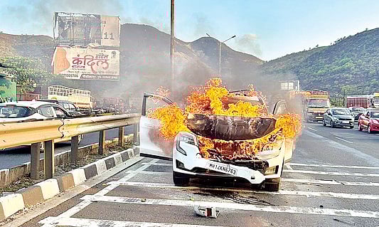 दरी पूल परिसरातील गतिरोधकावर चालकाचे नियत्रंण सुटल्याने कारची पुढे चाललेल्या टेम्पोला धडक बसली. त्यानंतर शॉर्टसर्किट होऊन कारला आचनक आग लागली. आग्निशमन दलाच्या जवानांनी तातडीने घटनास्थळी दाखल होत ही आग आटोक्यात आणली. त्यानंतर पोलिसांनी महामार्गावरील वाहतूक सुरळीत केली. दरम्यान, घटनेची माहिती मिळताच भारती विद्यापीठ पोलिस ठाण्याचे पोलिस निरीक्षक विजय पुराणिक व सहायक पोलिस निरीक्षक सचिन धामणे तत्काळ घटनास्थळी दाखल झाले.