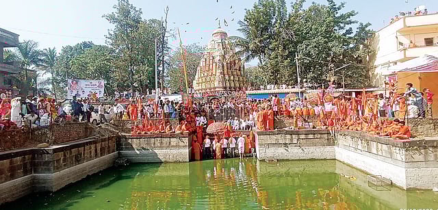 सासवड : पुढारी वृत्तसेवा : श्री क्षेत्र नारायणपूर (ता. पुरंदर) येथे पोपट महाराज (स्वामी) यांच्या अधिपत्याखाली तीन दिवसांचा अभूतपूर्व दत्तजयंती सोहळा पार पडला. मंगळवारी (दि. 26) सकाळी चंद्रभागा कुंडावर ब्रह्मा, विष्णू, महेश यांचे मुखवटे व पादुका यांना चंद्रभागास्नान, अभिषेक व पुष्पवृष्टी करून सोहळ्याची सांगता झाली. मंगळवारी पहाटे 4 वाजता नारायणेश्वर (महादेव) आणि दत्त मंदिरात रुद्राभिषेक करण्यात आला. त्यानंतर पूर्णिमा हवन, आरती होऊन पालखी ग्रामप्रदक्षिणेला सुरुवात झाली. दर्शनासाठी हजारो भाविकांनी गर्दी केली होती. चंद्रभागा कुंडावर ब्रह्मा, विष्णू, महेश यांचे मुखवटे व पादुका यांचा दही, दूध, पंचामृताचा अभिषेक व चंद्रभागास्नान कन्याकुमारीचे दीपक पारोळ, विजय सूर्यवंशी, तात्यासाहेब भिंताडे, विजय पुरंदरे, अजयसिंह जगताप यांच्या हस्ते घालण्यात आले.