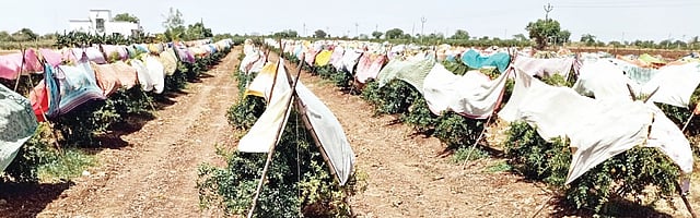 बावडा; पुढारी वृत्तसेवा : तीव्र उन्हापासून फळबागांच्या संरक्षणासाठी साड्यांचा आच्छादन म्हणून शेतकर्यांकडून वापर होत आहे. नेटच्या तुलनेत साड्या कमी किमतीत उपलब्ध होत आहेत. परिणामी, इंदापूर तालुक्यात साड्यांचा आच्छादनासाठी वापर वाढला आहे.