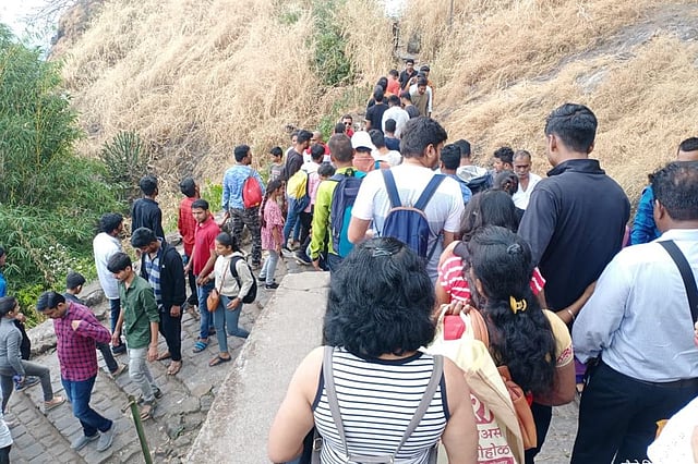 दिवसभरात वनविभागाची धावपळ सिंहगड वन विभागाचे वन परिमंडल अधिकारी बाबासाहेब लटके व वनरक्षक बाळासाहेब जिवडे यांनी वाढती गर्दी पाहून वाहतुकीचे नियोजन करून गडावरील वाहनतळापासून घाट रस्त्याच्या दोन्ही मार्गावर सुरक्षारक्षक तैनात केले. नितीन गोळे, शांताराम लांघे, रमेश खामकर यांच्यासह तीसहून अधिक सुरक्षारक्षक सुरळीत वाहतुकीसाठी धावपळ करीत होते. दिवसभरात दोन्ही मार्गाने गडावर पर्यटकांची चारचाकी 519 व दुचाकी 1432 वाहने गेली.