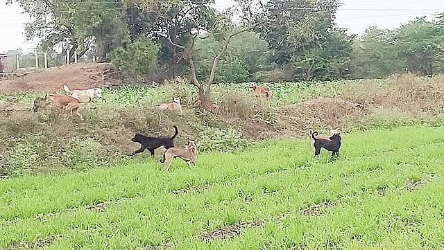 10 ते 15 कुत्री एकत्र रस्त्यावर बिनधास्तपणे फिरताना दिसतात. सध्या या परिसरात गहू, हरभरा या पिकांचे नुकसान कुत्री करत आहेत. या पिकांमध्ये कुत्री लोळण घेत आहेत, तर उभ्या पिकांमध्ये भांडणे करत आहेत. त्यामुळे पिकांचे नुकसान होत आहे. या रोजच्या प्रकारामुळे शेतकरी त्रस्त झाले आहेत. या मोकाट कुत्र्यांच्या त्वरित बंदोबस्त करावा, अशी मागणी शेतकर्यांनी केली आहे