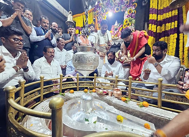 भीमाशंकर: श्री क्षेत्र भीमाशंकर येथे राज्याचे उपमुख्यमंत्री एकनाथ शिंदे यांनी श्रावणी चौथ्या सोमवारी (दि. 18) ज्योतिर्लिंगाचे दर्शन घेतले. यावेळी त्यांनी राज्यातील बळीराजाला सुखी कर, समृद्ध कर, असे साकडे घातले. यावेळी त्यांनी शिवलिंगावर जलाभिषेकही केला.