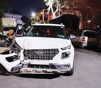 कारचालकाने भरधाव कारने रस्त्यावर पार्क केलेल्या कारला धडक दिली. त्यानंतर कार घराच्या गेटला जाऊन धडकली. दररोज त्या ठिकाणी नागरिक गप्पा मारत बसतात. तसेच, काही वृद्ध मंडळी शतपावलीसाठी रस्त्यावरुन जात असतात. मात्र, सुदैवाने अपघात घडला, त्या वेळी तेथे कोणीही नव्हते. अपघात इतका भीषण होता की, कारच्या दोन्ही इअर बॅग उघडल्या होत्या.