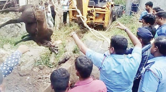 बिबवेवाडी : पुढारी वृत्तसेवा : सातारा रस्त्यावरील डी-मार्ट समोरील महालक्ष्मी अपार्टमेंटच्या परिसरात असलेल्या ओढ्यातील खड्ड्यात एक देशी गीर गाय चरत असताना पडली. अग्निशामक दलाच्या जवानांनी खड्ड्यातून बाहेर काढून या गायीला जीवदान दिले.ओढ्यातील खड्ड्यात गाय पडल्याची माहिती नागरिकांनी बिबवेवाडी क्षेत्रीय कार्यालयाचे सहायक आयुक्त प्रकाश गायकवाड यांनी दिली. त्यांनी याबाबत तातडीने अग्निशामक दलाला माहिती दिली. त्यानंतर महापालिकेचा जेसीबी, खासगी क्रेन व अग्निशामक दलाचे जवान घटनास्थळी दाखल झाले. त्यानंतर सुमारे दोन तासांच्या अथक प्रयत्नानंतर या गायीला खड्ड्यातून बाहेर काढण्यात आले. पद्मावती सब स्टेशनच्या अग्निशामक दलाचे जवान, आरोग्य निरीक्षक सचिन पवार, मुकादम किरण वाघमारे आणि महापालिका कर्मचार्यांनी गायीला बाहेर काढण्यासाठी परिश्रम घेतले.