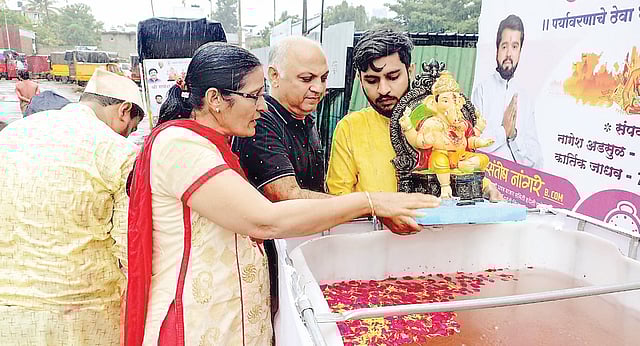बहुतांश नागरिकांनी हौदातील पाण्यातच श्रींच्या मूर्तीचे विसर्जन करणे पसंत केले. शहरास उपनगरांतही रात्री उशिरापर्यंत गणेश विसर्जन सुरू होते. सात दिवसांच्या बाप्पाला सोमवारी भाविकांनी जड अंतःकरणाने भावपूर्ण निरोप दिला. घाटावर 'गणपती बाप्पा मोरया, पुढच्या वर्षी लवकर या' असा जयघोष करीत गणेशमूर्तीचे विसर्जन करताना गणेशभक्त.