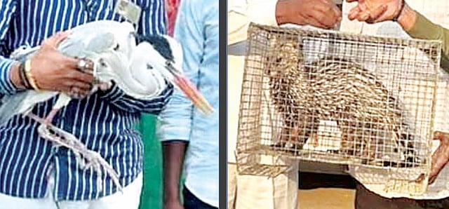 तळेगाव ढमढेरे : पुढारी वृत्तसेवा : शिक्रापूर (ता. शिरूर) येथे राखी बगळ्याला, तर वाजेवाडी येथे कस्तुरी मांजराला प्राणिमित्रांनी जीवदान दिले. राखी बगळ्याला निसर्गाच्या सान्निध्यात मुक्त करण्यात आले, तर अस्वस्थ अवस्थेत असलेल्या दुर्मीळ कस्तुरी मांजराला वन विभागाच्या वतीने जुन्नर येथे दाखल करण्यात आले. शिक्रापूर येथील तळेगाव रोड परिसरात मंगळवारी (दि. 30) सायंकाळच्या सुमारास महावितरणचे ज्ञानेश्वर पांडे हे काम करीत असताना एक मोठा पक्षी जाळीत अडकल्याचे त्यांना दिसले. याबाबतची माहिती निसर्ग वन्यजीव सामाजिक संस्थेचे शेरखान शेख यांना दिली. त्यांनी त्या ठिकाणी धाव घेत येथे जाळीत अडकलेल्या दुर्मीळ राखी बगळ्याला जाळीतून मुक्त केले.
