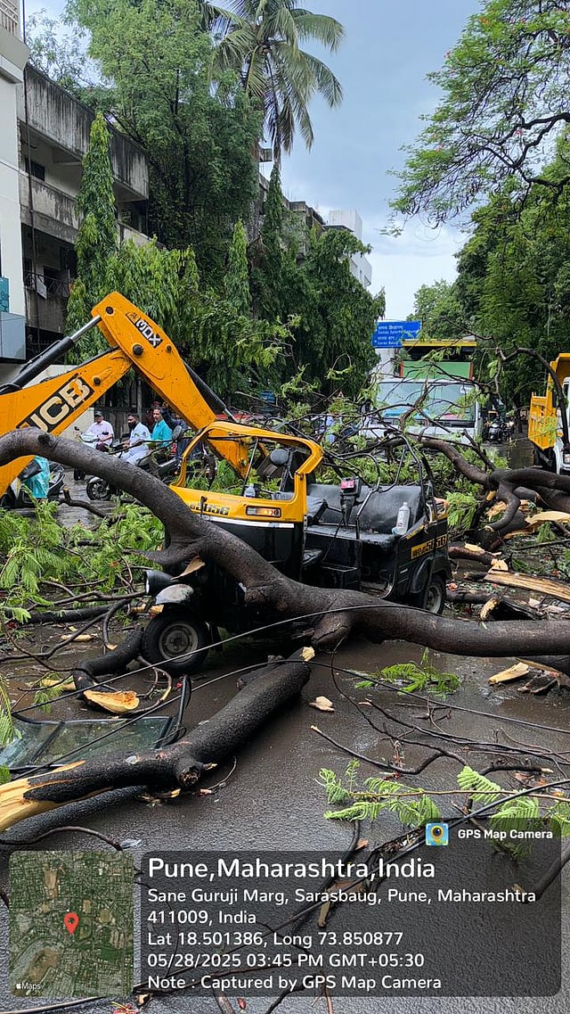 पुण्यात नुकत्याच झालेल्या पावसात दि. 23 तारखेला 6 ठिकाणी झाडपडीच्या घटना घडल्या, तर दि. 25 आणि 26 मे 2025 रोजी एकूण 17 ठिकाणी झाडपडीच्या घटना घडल्या. यामुळे काही घटनांमध्ये जीवितहानी आणि वाहनांचे नुकसान झाल्याचे दिसले, तर फक्त 26 तारखेलाच एकूण सहा झाडपडीच्या घटना घडल्याची नोंद पुणे अग्निशमन दलाने केली आहे.