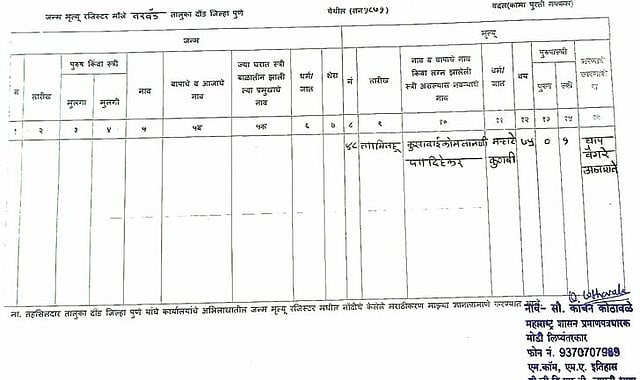 खोर : पुढारी वृत्तसेवा : कुणबी-मराठा अशी 1871 मधील नोंद वरंवड (ता. दौंड) येथील जन्म-मृत्यू रजिस्टर म्हणजेच गाव नमुना नंबर 14 सापडली आहे. राज्यातील ही पहिली कुणबी-मराठा नोंद असल्याचा दावा महाराष्ट्र शासन प्रमाणपत्रधारक मोडी लिप्यंतरकार कांचन कोठावळे यांनी केला आहे.