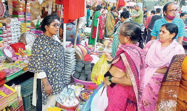 शहरात मोठ्या उत्साहात पार पडणार्या नवरात्रोत्सवाच्या पार्श्वभूमीवर मध्यवर्ती भागातील मंडई, हुतात्मा बाबू गेनू चौक, शनिपार चौक परिसरात तात्पुरत्या स्वरूपात पूजा साहित्य, फुले, माती, घट विक्रेत्यांनी दुकाने थाटली आहे. शनिवारी सकाळपासून या भागात पूजा परडी, घट, हळद, कुंकू, गुलाल, हळकुंड, गुलाबपाणी, समई वात, मंडपी, लाल वस्त्र, दोरा गुंडी, अत्तर, गोमूत्र, गंगाजल, कापूर, माती यांसह पूजा साहित्याच्या खरेदीसाठी गर्दी झाली होती. सायंकाळनंतर मंडई परिसरातील गर्दी वाढली होती. त्यामुळे वाहतूक विस्कळीत झाली होती.