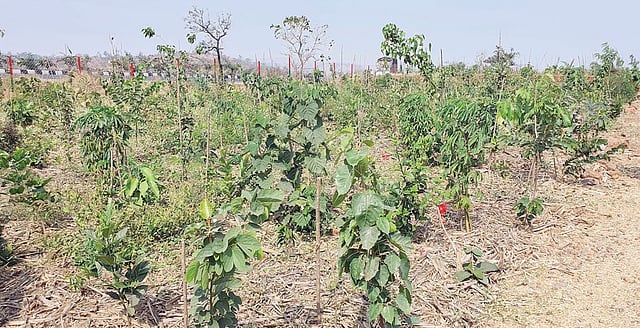 या तीन झाडांमध्ये एक मोठे देशी वृक्ष, एक झुडूपवर्गी व एक त्याहून कमी वाढणारी फुलझाडे, औषधी वनस्पती लावण्यात आल्या आहेत. दोन एकरमध्ये तब्बल 93 विविध प्रकारच्या 24 हजार वनस्पती लागवड करण्यात आली आहे. मुरबाड क्षेत्र असलेल्या या परिसरात जंगलाची वाढ चांगल्या पध्दतीने होण्यासाठी मातीची प्रत वाढावी, वृक्ष, झाडाझुडपांच्या वाढीसाठी योग्य पोषणमूल्य मिळावे म्हणून वृक्षलागवडीपूर्व मातीमध्ये शेणखत, उसाची मळी, पालापाचोळा अशा विविध प्रकारच्या सेंद्रिय व नैसर्गिक खतांचा वापर करण्यात आला.