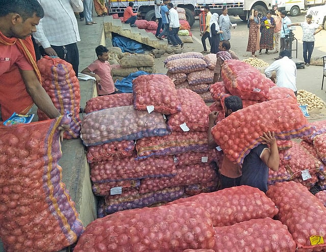 शहराच्या पंचक्रोशीमधून कांद्याची आवक मोठ्या प्रमाणात झाली असल्याची दिसून आले. मात्र, बटाट्याची आवक कमी झाली असली, तरी दरात मात्र घसरण झाली आहे.