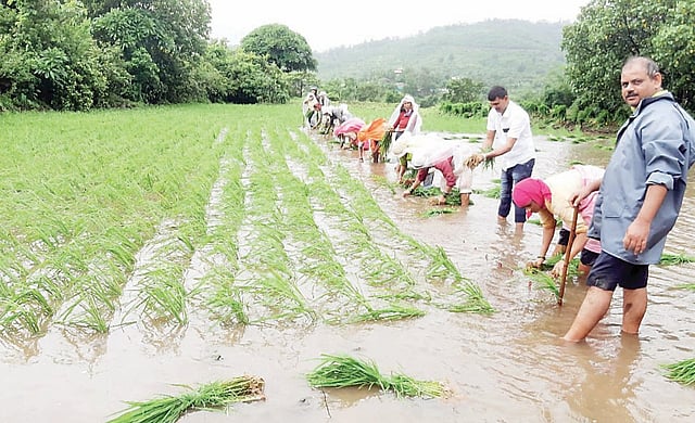 वडगाव मावळ(पुणे); पुढारी वृत्तसेवा : पवन मावळात दोन हजार हेक्टरवर भात लागवड करण्यात आली आहे. उत्पन्न वाढीसाठी मावळ तालुका कृषी अधिकारी व मंडळ कृषी अधिकारी काले कॉलनी यांच्या वतीने पवन मावळ भागातील 10 हेक्टर क्षेत्रावर व 25 लाभार्थी शेतकर्यांच्या शेतात/चारसूत्री भात लागवड प्रकल्पांतर्गत झिंक सल्फेट व कामगंध सापळे वाटप करून मार्गदर्शन