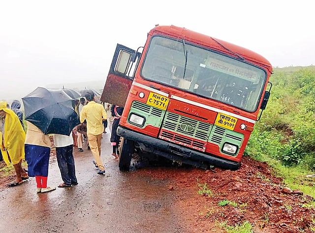 समोरून येणार्या वाहनास साइड देताना बस रस्त्यालगतच्या खोदलेल्या मात्र व्यवस्थित न बुजलेल्या चारीत रुतून वाहकाच्या बाजूने झुकली. सुदैवाने ही बस पलटी झाली नाही. चालकाने प्रसंगावधान राखत वेळीच बसवर नियंत्रण मिळवले. बसमध्ये तीस ते चाळीस प्रवासी होते. अन्यथा मोठी जीवितहानी झाली असती. याबाबत जलजीवनचे अधिकार्यांशी संपर्क साधण्याचा प्रयत्न केला असता मोबाईल क्रमांक बंद लागला.