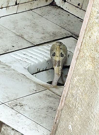 खडकवासला : पुढारी वृत्तसेवा : सिंहगड रस्त्यावरील किरकटवाडी फाट्यावरील ओढ्याच्या परिसरातील जेपीनगर वसाहतीतील सार्वजनिक स्वच्छतागृहात शुक्रवारी (दि. 15) कोब्रा नागाने ठाण मांडल्याने रहिवाशांत दहशत पसरली. त्यामुळे प्रशासनाचीही मोठी धावपळ उडाली. नागरिकांनी आरडाओरडा केल्यानंतर कोब्रा नाग स्वच्छतागृहातून लगतच्या ओढ्यात निघून गेला. स्वच्छतागृहाची दयनीय अवस्था झाली आहे. दरवाजांसह फरशा फुटल्या आहेत. नियमित स्वच्छता नसल्याने दुर्गंधी पसरली आहे.