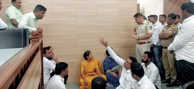 आज मी कार्यालयात आले असता मला दोन तास बाहेर बसवण्यात आले व नंतर म्हणाले की, 'आम्ही याबाबत राजशिष्टाचार विभागाकडून मार्गदर्शन घेऊन ही कोनशिला त्यांनी जर बदलण्यास सांगितले, तर आम्ही ती बदलू. यामुळे कार्यकर्ते चिडले. त्यांनी कार्यालयातच मोठा गोंधळ घातला.' चार तास चाललेल्या या आंदोलनामध्ये विभागीय जिल्हाध्यक्ष वैशाली नागवडे, तालुकाध्यक्ष उत्तम आटोळे, जीवराज पवार, वसीम शेख, सोनू धनवे, शहराध्यक्ष गुरमुख नारंग यांच्यासह अनेक कार्यकर्ते सायंकाळी आठ वाजले तरी उपविभागीय कार्यालयात ठाण मांडून बसले होते.