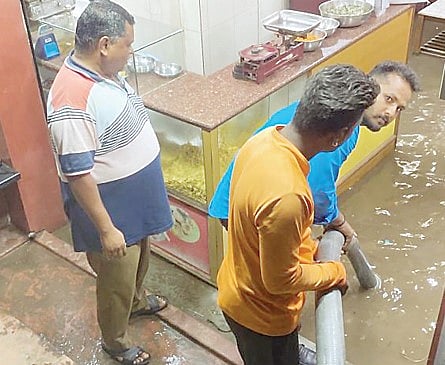 रस्ते व पूल उंचावर गेल्याने शहरातील तीन हत्ती चौकातील भारत भेळ या दुकानात पाणी भरले गेले. मुख्याधिकारी महेश रोकडे यांच्या मार्गदर्शनाखाली आरोग्य निरीक्षक अजय लालबिगे, कुणाल लालबिगे, मुकादम रणजित अहिवळे, संदीप जेधे, गोपाळ वाल्मिकी, नीलेश अहिवळे यांनी तेथे धाव घेत सक्शन मशिनद्वारे पाणी उपसा करून गाळा पूर्ववत करून दिला. याशिवाय शहरातील महादेव मळा भागातही मोठ्या प्रमाणावर पाणी साचले होते. तेथेही सक्शन मशिनद्वारे पाणी उपसा करण्यात आला.