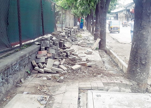 पावसाळी वाहिनीचे काम पूर्ण झाले आहे. पदपथ दुरुस्तीच्या कामासाठी निधी उपलब्ध नसल्याने जुनेच ब्लॉक बसविण्यात आले आहेत. निधी उपलब्ध झाल्यानंतर या पदपथाचे काम नव्याने करण्यात येईल.
