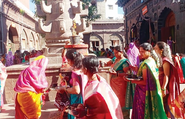 तसेच, मंदिरातून बाहेर आल्यानंतर तुळशी वृंदावन तसेच मंदिराला प्रदक्षिणा घातल्या. त्यानंतर एकमेकींना तिळगुळ घेत हळदी-कुंकू लावून वाणाने ओटीभरण केले. मंदिर परिसरात महिला फेर धरून फुगड्या खेळताना दिसून आल्या. पूरण पोळीचा नैवेद्य देवदेवतांना दाखविला. काही महिलांनी मातीचे मडके आणून त्यात वाण घालून त्याची मनोभावे पूजा केली. तसेच, त्याच्या भोवती दोरा गुंडाळून हळद-कुंकू वाहून पूजा केली. तसेच, परिसरातील नागरिकांनी तिळगूळ देऊन मकरसंक्रांतीच्या शुभेच्छा दिल्या.