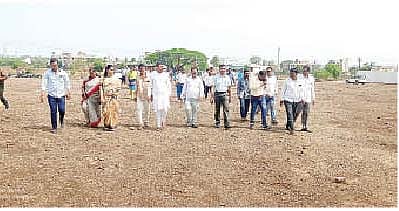 जेजुरी येथील नवीन पालखी तळाची पाहणी करताना आळंदी संस्थानचे विश्वस्त व पालखी सोहळा समितीचे प्रमुख.