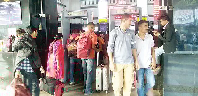 प्रवेशद्वारावरून प्रवासी मोठमोठ्या बॅगा घेऊन ये-जा करीत होते. त्यांच्या बॅगांची तपासणी होत नव्हती आणि बॅग तपासणी यंत्र देखील बंद होते. त्यामुळे प्रवासी बॅगांमध्ये नक्की काय घेऊन गेले, याची माहिती कशी मिळणार आणि एखाद्या प्रवाशाने चुकून एखादी वस्तू आत नेली आणि दुर्घटना घडली, तर याला जबाबदार कोण, असे प्रश्न उपस्थित होत आहेत. रेल्वे प्रशासनासह सर्व यंत्रणांचे याकडे अक्षम्य दुर्लक्ष होत असून, प्रवाशांच्या जिवाला मोठा धोका होण्याची शक्यता नाकारता येत नाही.