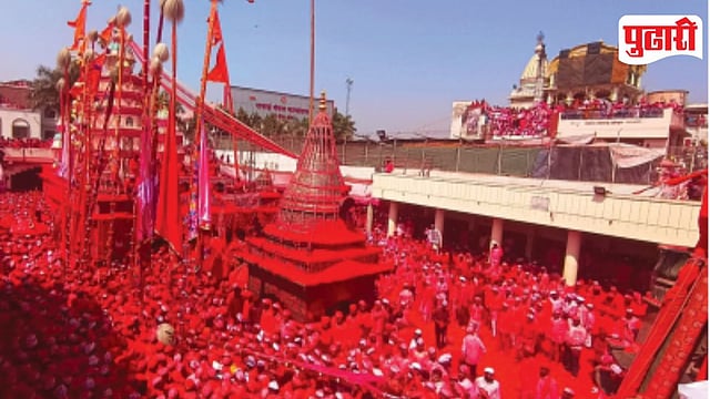रंगशिंपण सोहळ्यानिमित्त गुरुवारी कोडीतची मानाची पालखी देऊळवाड्यात आली. त्या पाठोपाठ कनेरी, वाई, सोनवडी, भोंडवेवाडी, राजेवाडी, कसबा, पुणे या सर्व मानाच्या पालख्या, काठ्या ढोल-ताशांच्या गजरात निशाण, छत्री, अब्दागिरी, दागिनदार सर्व लवाजम्यासह देऊळवाड्यात दाखल झाल्या. मंदिरात दादा बुरुंगले व तात्या बुरुंगले यांच्या भाकणुकीचा कार्यक्रम होऊन दीड वाजता देवाचे मानकरी राऊत यांचे भाचे मानकरी जमदाडे यांचेमार्फत रंगाचे शिंपण करण्यात आले. या वेळी देवाचा शिंपडलेला रंग अंगावर घेण्यासाठी भाविकांनी लाखोंच्या संख्येने गर्दी केली होती. देवाच्या या रंगशिंपणाच्या सोहळ्याला भाविकांचा जनसागर उसळला होता.