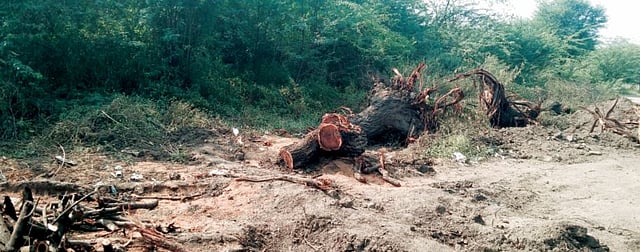भवानीनगर : पुढारी वृत्तसेवा : जलजीवन मिशन पाणी योजनेच्या तलावासाठी सणसर (हिंगणेवाडी, ता. इंदापूर) येथे गायरानातील झाडांची सर्रास कत्तल सुरू करण्यात आली आहे. सामान्य शेतकर्यांना बांधावरचे एखादे अडचणीचे झाड तोडले तरी कारवाईची भीती दाखविणारा वनविभाग मात्र या योजनेच्या ठेकेदाराच्या वळचणीला बसला आहे. सणसर परिसराला पिण्याच्या पाण्याचा पुरवठा करण्यासाठी हिंगणेवाडी येथे जलजीवन मिशन योजनेअंतर्गत तलाव करण्यात येणार आहे.