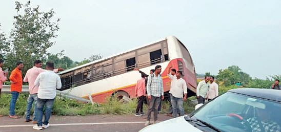 Jejuri Bus Accident: बारामतीहून जेजुरीकडे येणार्या एसटी बसचालकाला अचानक त्रास होऊ लागला. त्यामुळे चालकाचा बसवरील ताबा सुटून बस रस्त्यावरून खाली उतरून अपघात झाला. या अपघातात दहा जण जखमी झाले. त्यातील दोघे अत्यवस्थ आहेत. गुरुवारी (दि. 24) सायंकाळी सहाच्या दरम्यान मावडी येथे मोरगाव-जेजुरी रस्त्यावर हा अपघात घडला.