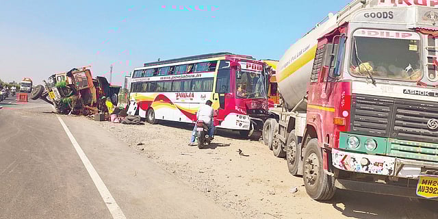 त्यामुळे बस टँकरवर आदळली. या विचित्र अपघातात अनेक जण किरकोळ जखमी झाले. यातील वाहने दुपारपर्यंत रस्त्यावर आल्याने वाहतुकीची कोंडी होत होती. रात्रीच्या वेळी पेट्रोलिंग करणारे पोलिस कर्मचारी व महामार्ग टोल प्रशासनाने वाहने बाजूला काढण्यात असमर्थता दाखविली. याबाबत संबंधित विभागाने माहिती देण्यास टाळाटाळ केली. रावणगाव औट पोस्ट पोलिस चौकीचे कर्मचारी परिसरात रात्रीच्या वेळेस गस्त घालतात. मात्र, मोठा अपघात होऊनही त्यांनी याकडे दुर्लक्ष केले. याबाबत परिसरात चर्चा होती.