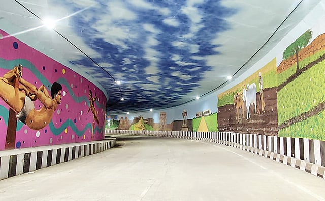पुणे; पुढारी वृत्तसेवा : चांदणी चौक प्रकल्पामध्ये कोथरूड व सातारा रस्त्याने मुळशीकडे जाण्यासाठी बांधण्यात आलेला भुयारी मार्ग सोमवारी वाहतुकीसाठी खुला करण्यात आला. या भुयारी मार्गात दोन्ही बाजूला, तसेच छतावर आकर्षक रंगसंगतीची भित्तीचित्रे चितारली असल्यामुळे, वाहनचालकांना या मार्गावरून जाताना सुखद अनुभव आला. बावधनकडून कात्रजच्या दिशेने जाणार्या वाहनांना यापुढे चांदणी चौकात येण्याची आवश्यकता भासणार नाही. त्यांच्यासाठी अडीचशे मीटर लांबीचा स्वतंत्र उड्डाणपूल बांधला आहे. त्या उड्डाणपुलावरून वाहने काही अंतरावर पुढे द्रुतगती मार्गावर उतरतील. बावधनकडून येणार्या वाहनांना थेट कात्रजकडे जाण्याचा हा पूल सोमवारी सुरू करण्यात आला.